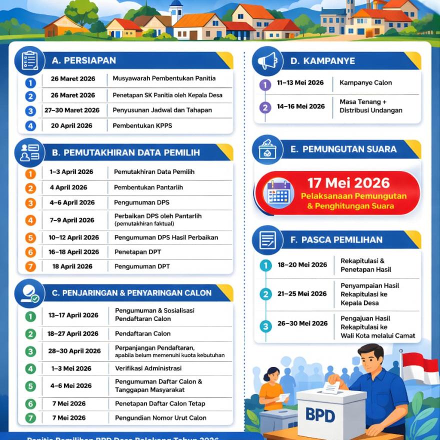 07 April 2026 18:53:27 | Administrator | 21 Kali | Berita DesaInilah tahapan dalam pengisian BPD Desa Balokang periode 2026-2034 ..selengkapnya